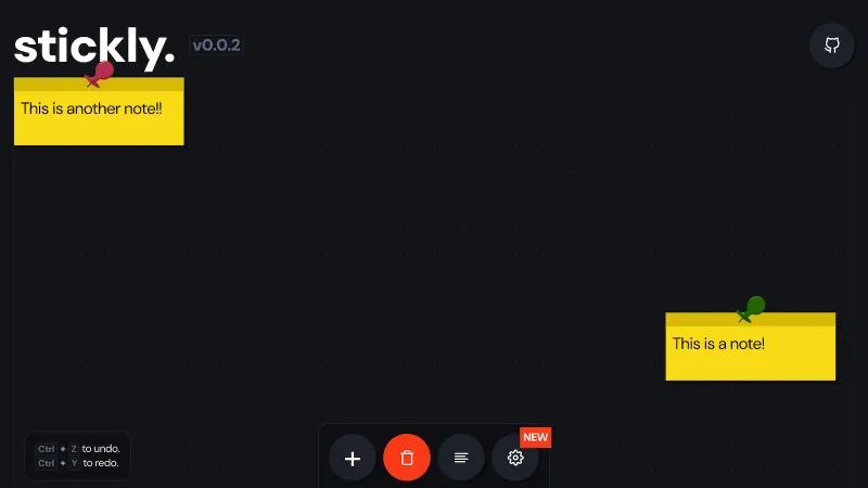 - Organize your thoughts with stickly, a handy virtual sticky notes board built with Astro by @floyare. Choose your note color, then drag and drop anywhere on the screen.