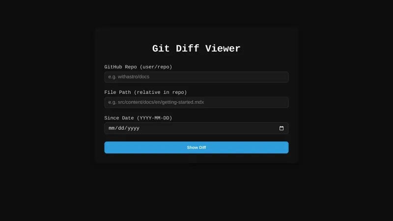 - Git Diff Viewer - View the diff of a file on a public GitHub repo since a specific date.