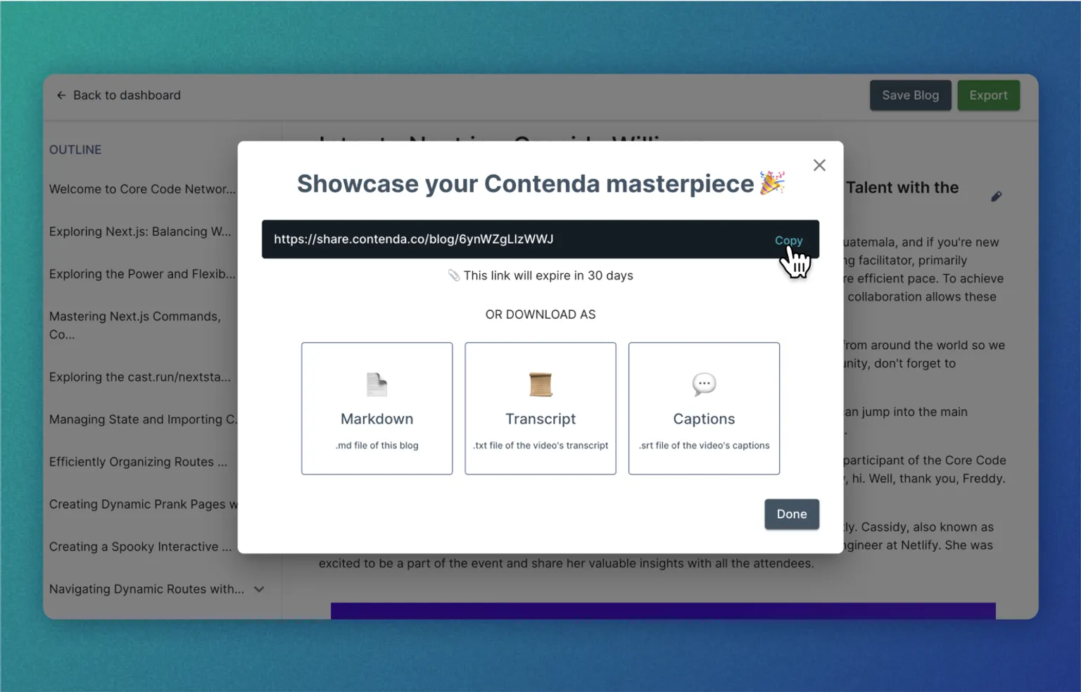 Developer advocates are the bridge between software companies and their developer users, often creating content to help educate and raise awareness in the community about particular features. Contenda makes it possible to take, for example, a video tutorial and turning it into a blog. This saves time and can even make it easier for a cross-functional team to collaborate.