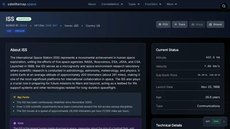 ISS (25544) - Live satellite tracking | SatelliteMap.space