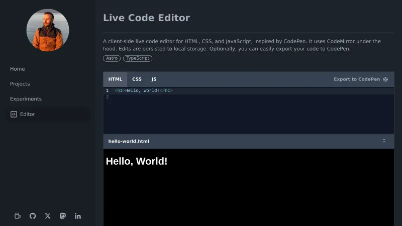 Live Code Editor for HTML/CSS/JS